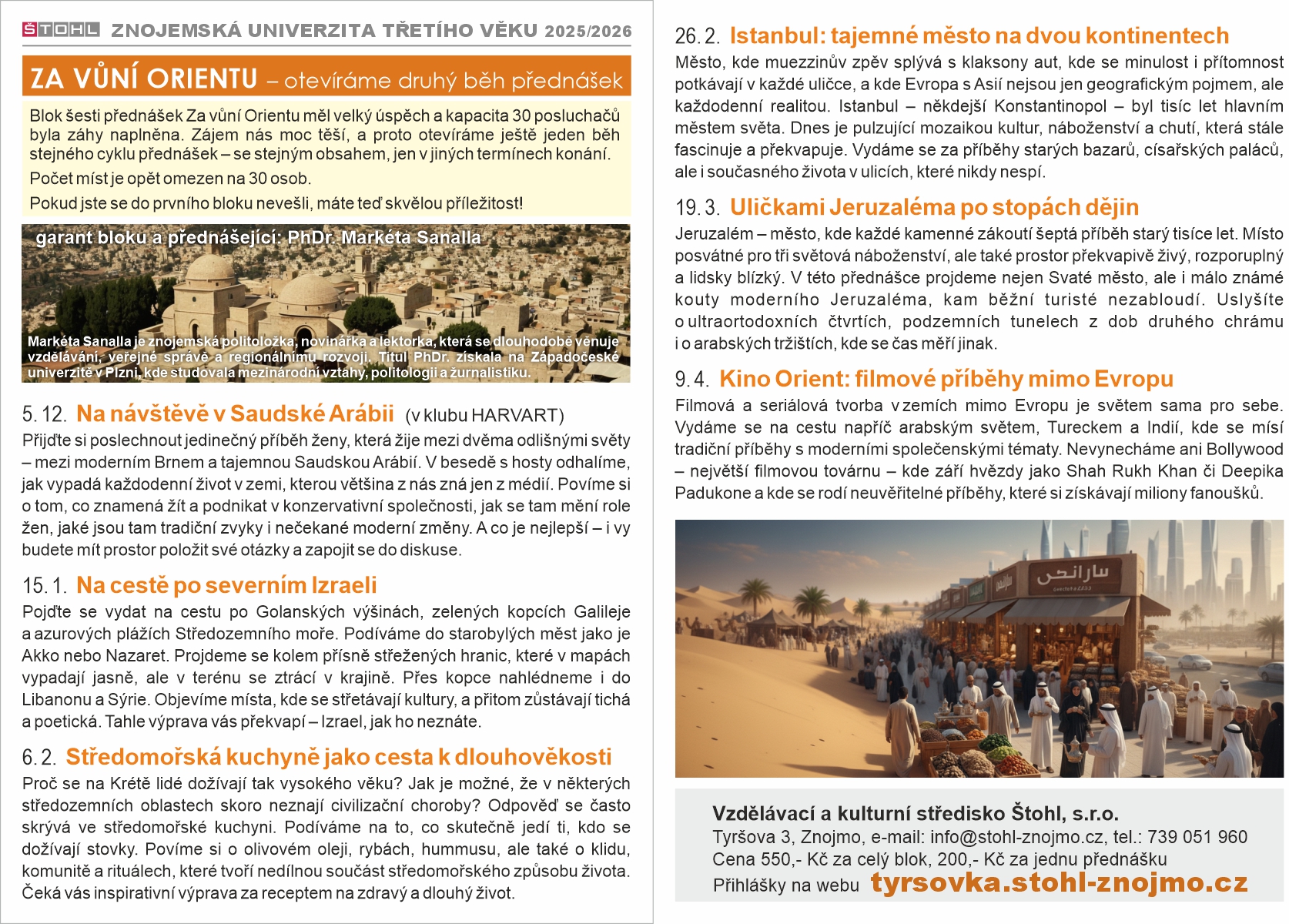 - Za vůní orientu - druhý přednáškový cyklus (garant PhDr. Markéta Sanalla)